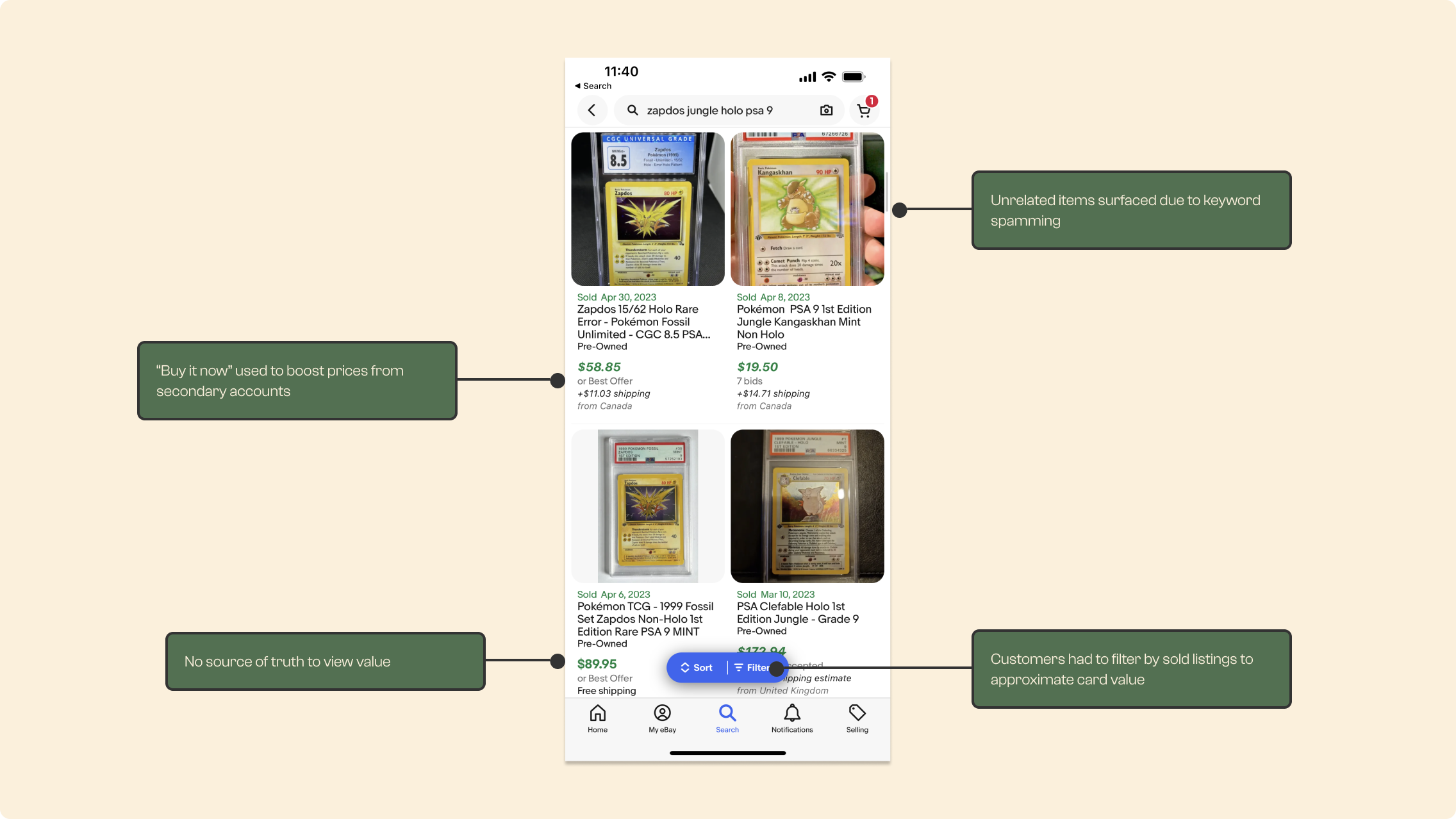 Finding out how much cards were worth on eBay was a very laborious, manual process. Secondly, eBay was losing to the competition due to data quality issues.
