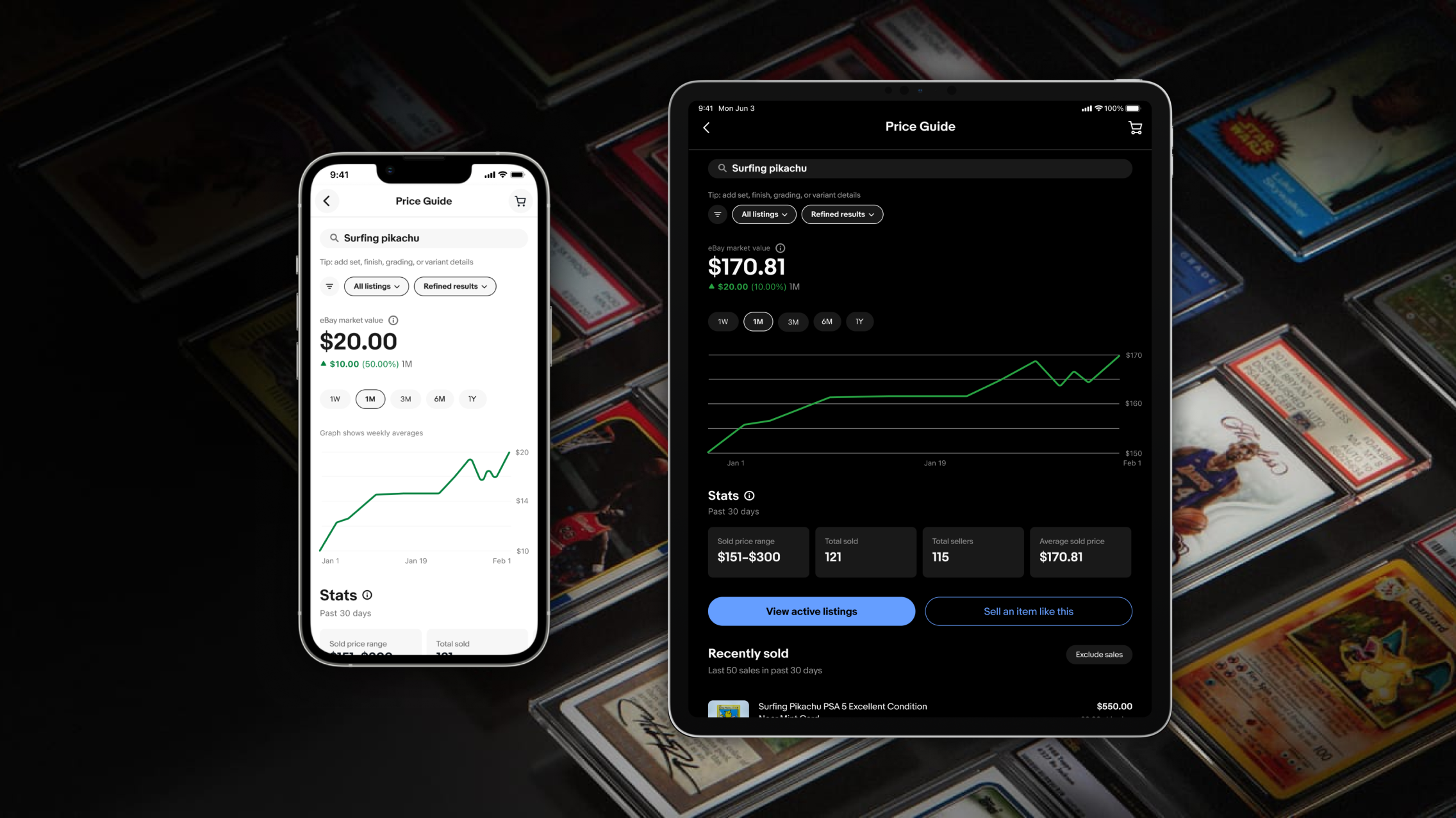 Customers can understand how much their cards are worth on eBay for the first time through eBay market value metric, price trends and filtering, and aggregated volume stats.